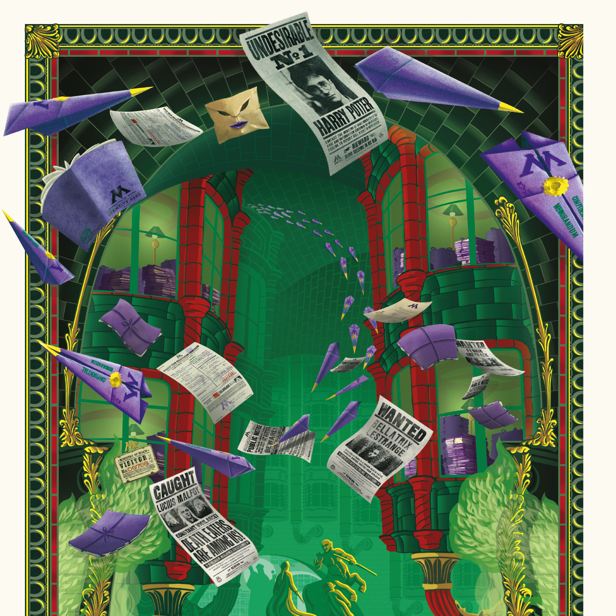 Mystery Postcards S2 – Diagon Alley was a fun and creatively fulfilling project that I led alongside illustrator Alejandro Rodriguez. The product consists of eight illustrated postcards that, when lined up, form a larger, continuous illustration of Diagon Alley from the Harry Potter film series. The design is packed with easter eggs from all the films, encouraging customers to collect the full set and uncover hidden details.